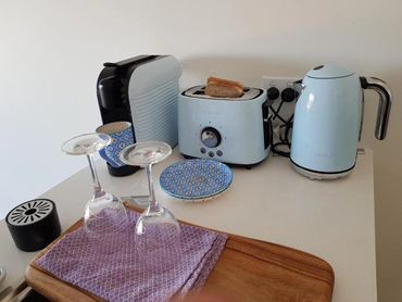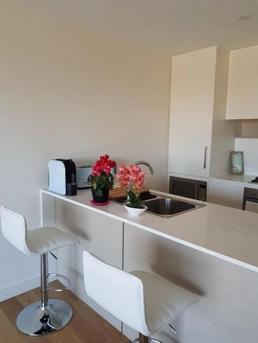 Light toned hard wood flooring within this cozy apartment with luxurious Italian designed leather sofa and marble tables. A modern marble top dining table with extended option and stylish chairs are for you to enjoy the fine dining. A SONY smart TV with NBN (WI-FI) access and free Netflix login that enhance your holiday joy. Besides basic cookwares and cutleries, a white European Expressi coffee machine (Expressi Pods are included), a SUNBEAM stylish toaster and a kettle are all included.